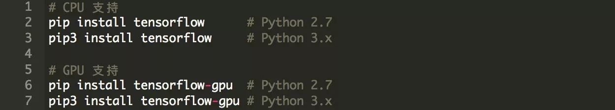 以下几行是在Ubuntu和Mac OSX上安装TensorFlow的方法: