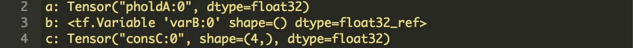 请注意,张量在此处不包含值,并且只有当图形在会话中运行的时候它们的值才可用。