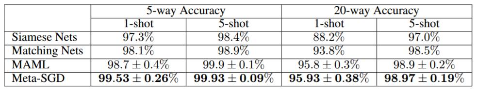 表 2:在 Omniglot 上的分类精度。