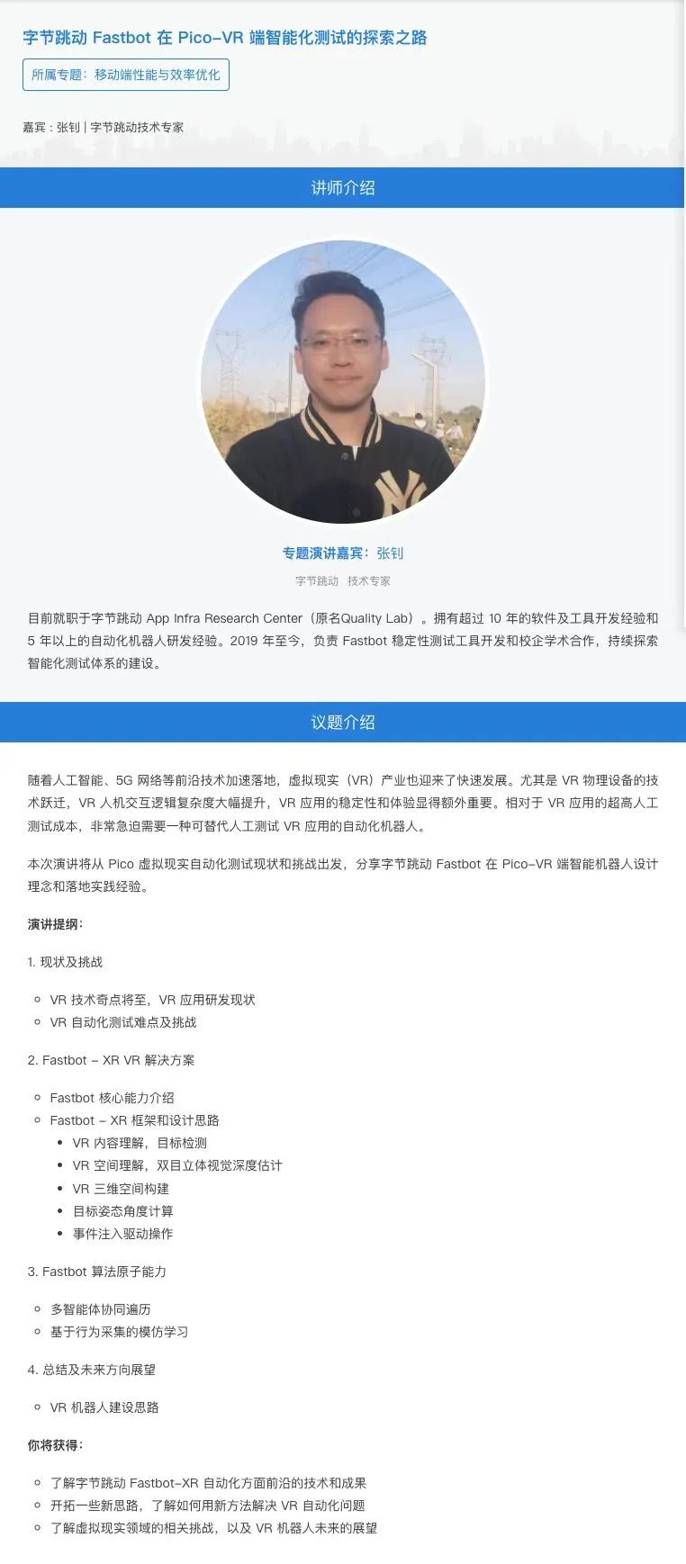 推荐议题:字节跳动 Fastbot 在 Pico-VR 端智能化测试的探索之路
