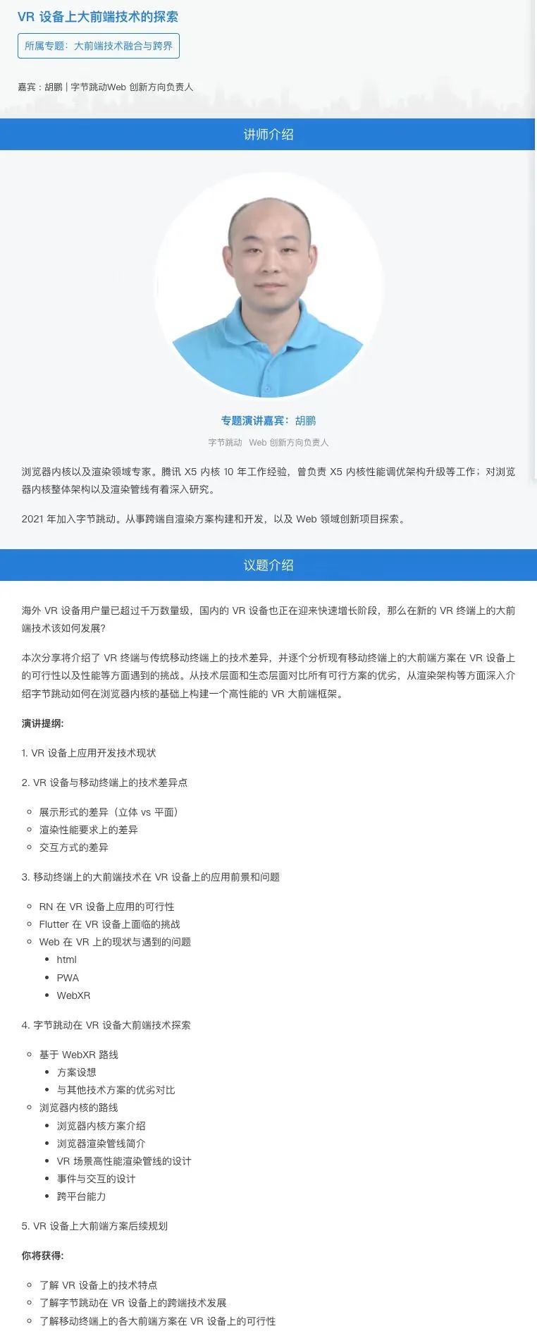 “你的下一步手机,何必是手机?”那它会是智能眼镜吗?会是 VR 设备吗?经过了几年的沉淀,VR 产业因为元宇宙的助推在今年迎来了一场小小的爆发。在这样的新终端上,大前端技术走向如何?稳定性和用户体验如何优化?这些都是让人兴奋的新挑战。