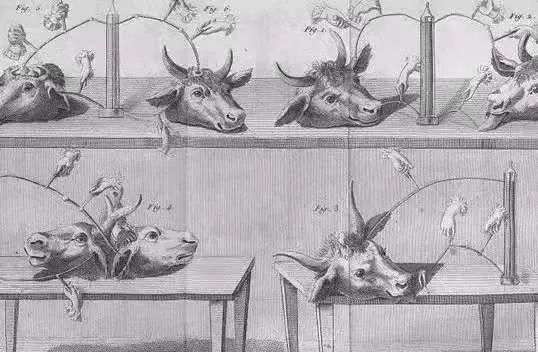 乔凡尼·阿尔蒂尼给牛头通电的实验