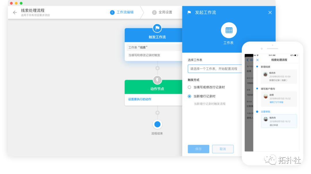 跟随乐高版,明道还发布了业内第一个新形态的工作流平台,和传统的BPM业务流程软件不一样,新一代的互联网工作流具备很强的开放性,可以通过内部的数据变更自动触发软件操作,也可以接入外部应用的触发和动作。工作流的创建和编辑流程清晰,容易理解,也完全不需要IT人员的参与,通过一个友好的可视化界面就可以实现。自动化工作流可以让用户企业减少无谓的员工重复劳动,在产品运营,销售市场,人力管理等多个环节实现自动化运行。