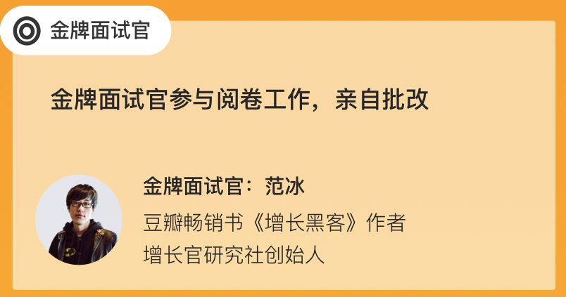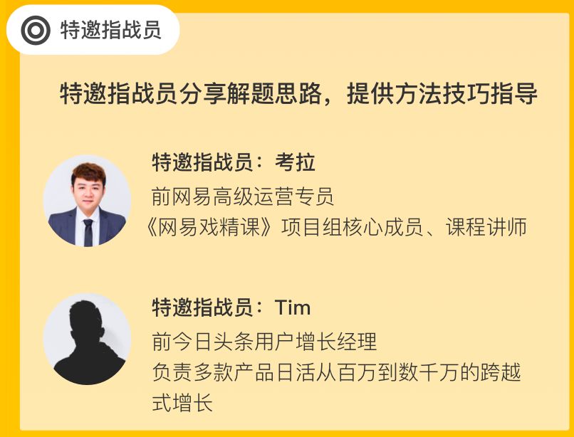 因此,在这次活动中,我们特定为大家请来了《增长黑客》作者范冰老师、前头条增长专家Tim老师、前网易增长专家考拉老师给予反馈,指导大家从这份面试题中获得最大收益。