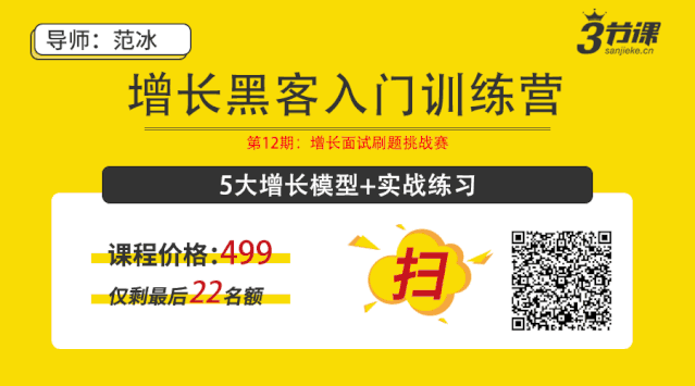 以上就是关于课程信息的介绍,看到这里,你可能要小心了——第12期《增长黑客入门训练营》仅剩的22个名额可能已然售空了,快扫下方二维码报名吧!友情提醒: 万万不要错过这次价值极高的活动哟。