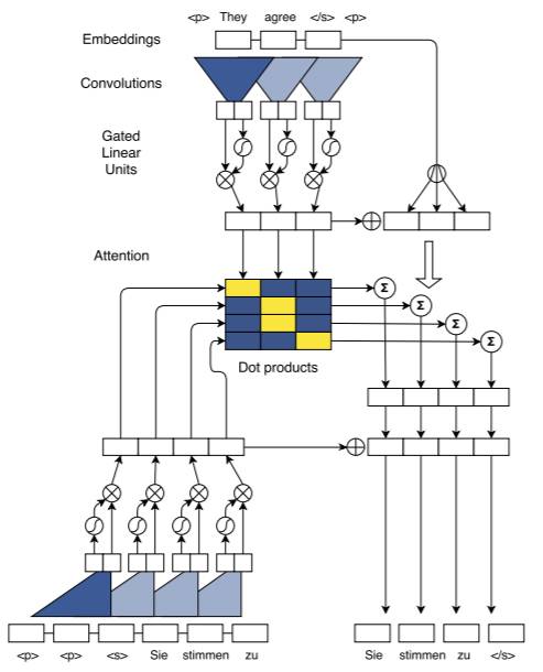 在之前的研究中,被用于翻译任务的 CNN 的表现并不比 RNN 出色。然而,鉴于 CNN 架构潜力,FAIR 开始研究将 CNN 用于翻译,结果发现了一种翻译模型设计,该设计能够让 CNN 的翻译效果也很出色。鉴于 CNN 更加出色的计算效率,CNN 还有望扩大翻译规模,将世界上 6,500 多种语言(世界语言种类大约为 6,900 多种——译者注)纳入翻译范围。