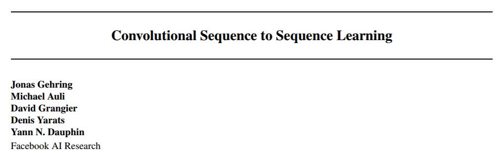 [1] Convolutional Sequence to Sequence Learning. Jonas Gehring, Michael Auli, David Grangier, Denis Yarats, Yann N. Dauphin.(即本论文)