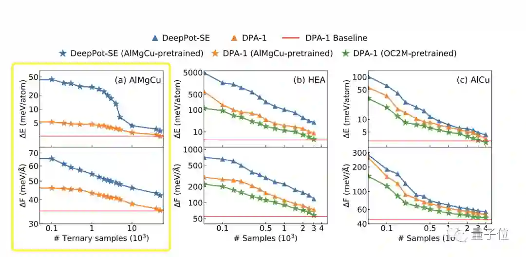 在AlMgCu合金数据集测试中,就将一元、二元子集上进行预训练,然后在三元子集上测试。
