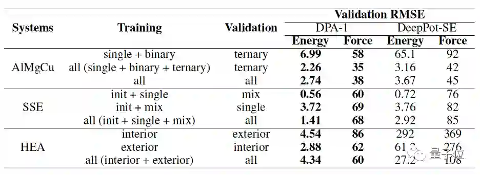 在迁移性测试中,研究人员有意将不同训练集划分成多个子集,且每个子集的组分、构型都有较大差异。