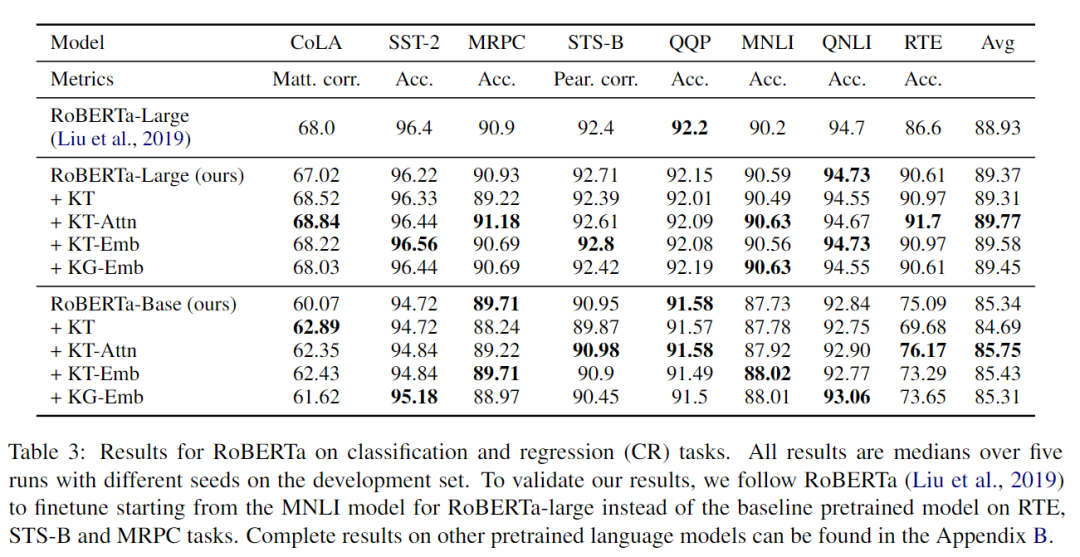 其中,KT 方式的知识来自于 Wikitonary 词典数据,通过词性标注等方式查到对应的词,将词典中的释义看作是知识,加入到任务之中。KG-Emb 的方式,则是使用 Wikidata 的数据,将图谱知识融合到任务中。其中 KT-Attn 方式是我心中比较理想的增强方式,而 KT-Emb 方法是我没有想到过的,但是看了文章之后我也尝试理解了这个方法,感觉上也是 make sense 的。
