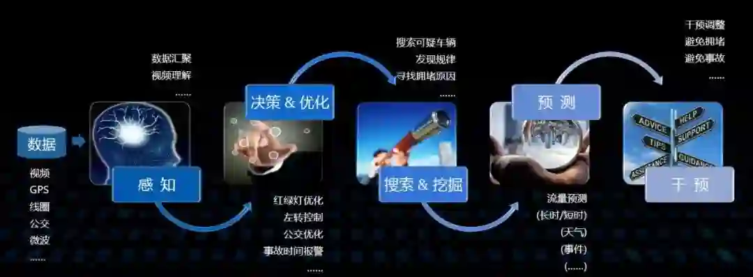 1)智慧城市第一难是“数据多效果少”。大数据时代城市治理的挑战在于海量公共数据与全局管控效果之间的矛盾,城市中的环境、设备、市民日夜不停地产生活动数据、环境数据(环境传感器、城市摄像头、电磁线圈)等,在线上再造了一个镜像般的“数字孪生城市”,但人类监管者却无法一目了然,靠人力很难深入理解城市“数据海洋”水面下隐含的真实交通需求。从实时治理交通、解决社会问题的良好愿望出发,“交通人治”模式往往会陷入“硬件建设-交通拥堵”的怪圈,国内很多城市为了提升交管、治安、环保能力,每年铺设大量摄像头、线圈等硬件设施,一个城市的全部摄像头记录的视频数据量,相当于1000亿张图片,一个人要看完所有视频大约需要100多年,海量视频数据都在“沉睡”,能被监管者查阅的不到10%,而且不同监管部门的硬件重复建设导致数据孤岛越来越多,然后却无法及时保障每一位市民的出行安全与体验。