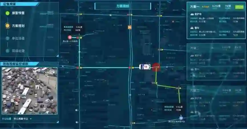第一,“全城感知”升级:以机器视觉、互联网/物联网数据分析代替交警巡逻,检测交通事件。以杭州交警建设的城市大脑为例,交通数据中台广泛连接、共享分析四类城市大数据源:(1)高德等互联网实时交通数据,作为决策基础;(2)路面视频数据,汇聚不同厂商摄像头全量视频;(3)路口地下线圈数据;(4)交警机构的卡口等数据。打穿政府部门间的数据孤岛、系统孤岛、决策孤岛,实现从“单点感知”到“全面感知”,从识别车牌到识别路面万物的智能进化,ET城市大脑中的“天曜”产品如同一个“眼观六路,耳听八方,运筹帷幄于千里之外”的虚拟交警,用全城路网上24小时在线、360º观测的球机监控替代一线警力巡逻,实时报警全城交通事故,20秒内识别出汽车走快车道、摩托车上高架、行人横穿马路等全部交通违法行为,甚至发现案例多发路口的不合理交通规则进行优化,不增加任何外场设备,在复杂社会环境中实现精准布警、警力资源的可再生式发展。另一方面,全局感知带来全局智能,萧山城市大脑为赶赴伤病患者地点的999急救车开设一路绿灯的“生命快速通道”,恰到好处的动态路权精准分配,即是城市对交通正义的最佳体现,又是政府对挽救生命的极致追求。