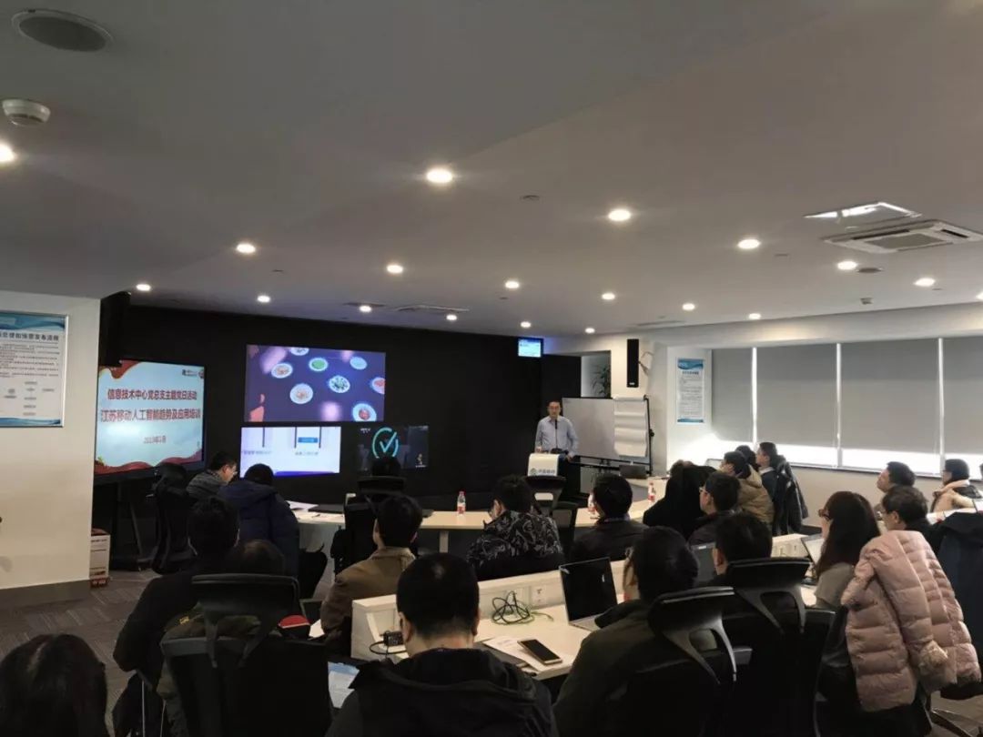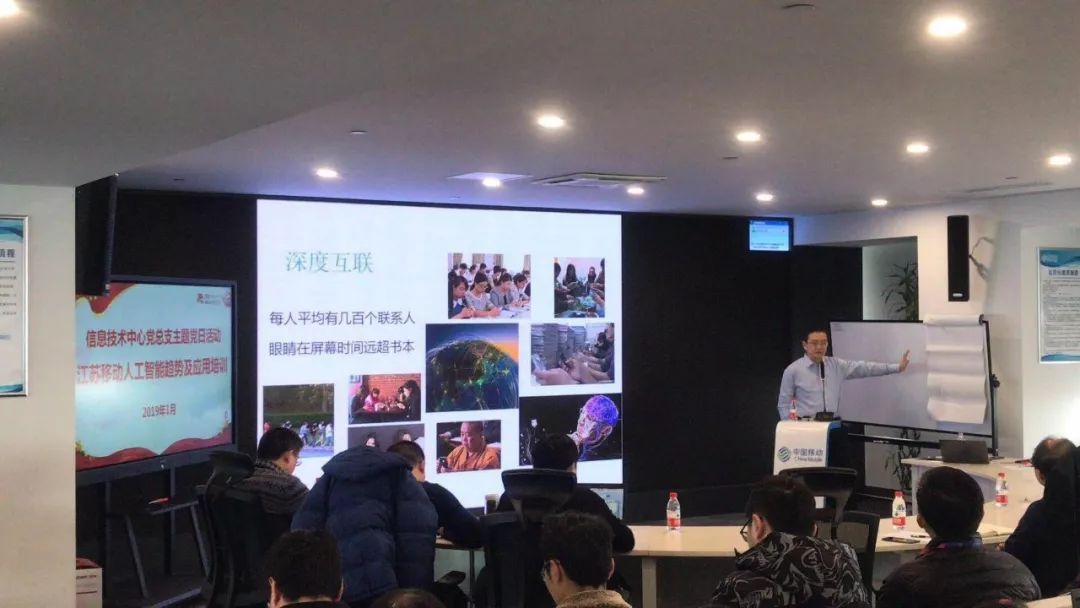 2019年1月13日,江苏移动信息技术中心党总支开展主题党日活动,中国大数据应用联盟人工智能专家委员会主任、云创大数据总裁刘鹏教授受邀参加,并在江苏移动人工智能趋势及应用培训上作主题报告。
