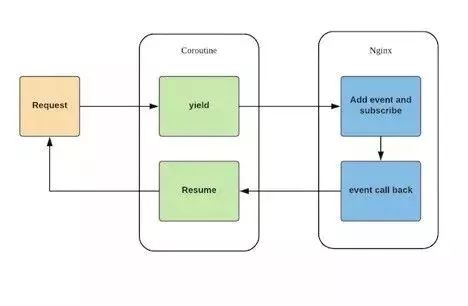 相比起nginx/luajitvm, CoSocket(协程socket)是更和实际应用相关的部分。OpenResty 中的 cosocket通过coroutine(协程)支持以及上面提到的非阻塞事件回调机制两部分结合在一起,最终保证了openresty能支持高并发网络操作的基础。用户的luascript每发起一个io request,都会伴随coroutine的 yield 以及 resume。请求的 Lua 脚本实际上都运行在独立的协程之上,当遇见网络事件时(比如ngx.socket.tcp),暂停自己,把网络事件注册到 Nginx 监听列表中,把CPU让给其它协程继续工作。当有 Nginx 注册网络事件达到触发条件时,唤醒对应的协程继续处理。创建一个协程的体量非常轻,占用内存开销极少,并且没有线程上下文的切换。