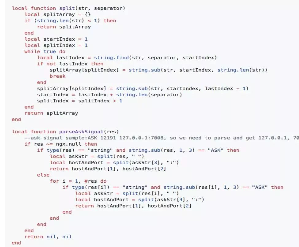 在开发过程中,非常感谢openresty group的其他开发者提的意见。比如需要解析redis cluster的ASK redirection:ASK 12191 127.0.0.1:7008, 我们需要得到127.0.0.1和7008, 如果按照lua正常的字符串split/sub还是比较慢的。