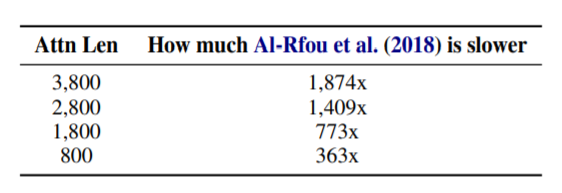 另外,作者做了一系列对比实验,证实了循环机制和相对位置编码的重要性,不再赘述,比如下面这张图是表明在片段长度较长的时候,其和vanilla Transformer的速度的差距。