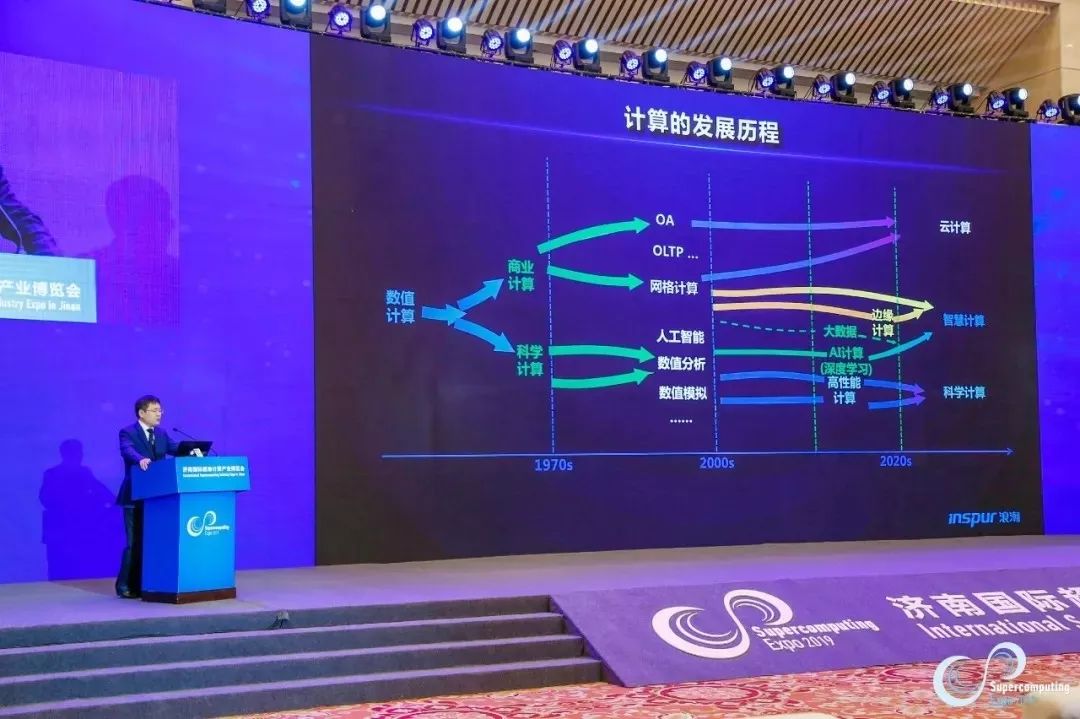 12月27日,以“超算无界、智创未来”为主题的2019国际超级计算产业博览会在济南召开。中国工程院院士、浪潮集团首席科学家王恩东在大会发表《智慧计算 未来动力》主题演讲。王恩东指出,人工智能正在驱动前所未有的社会变革,人工智能计算作为主要计算形态,正在成为未来的核心动力。