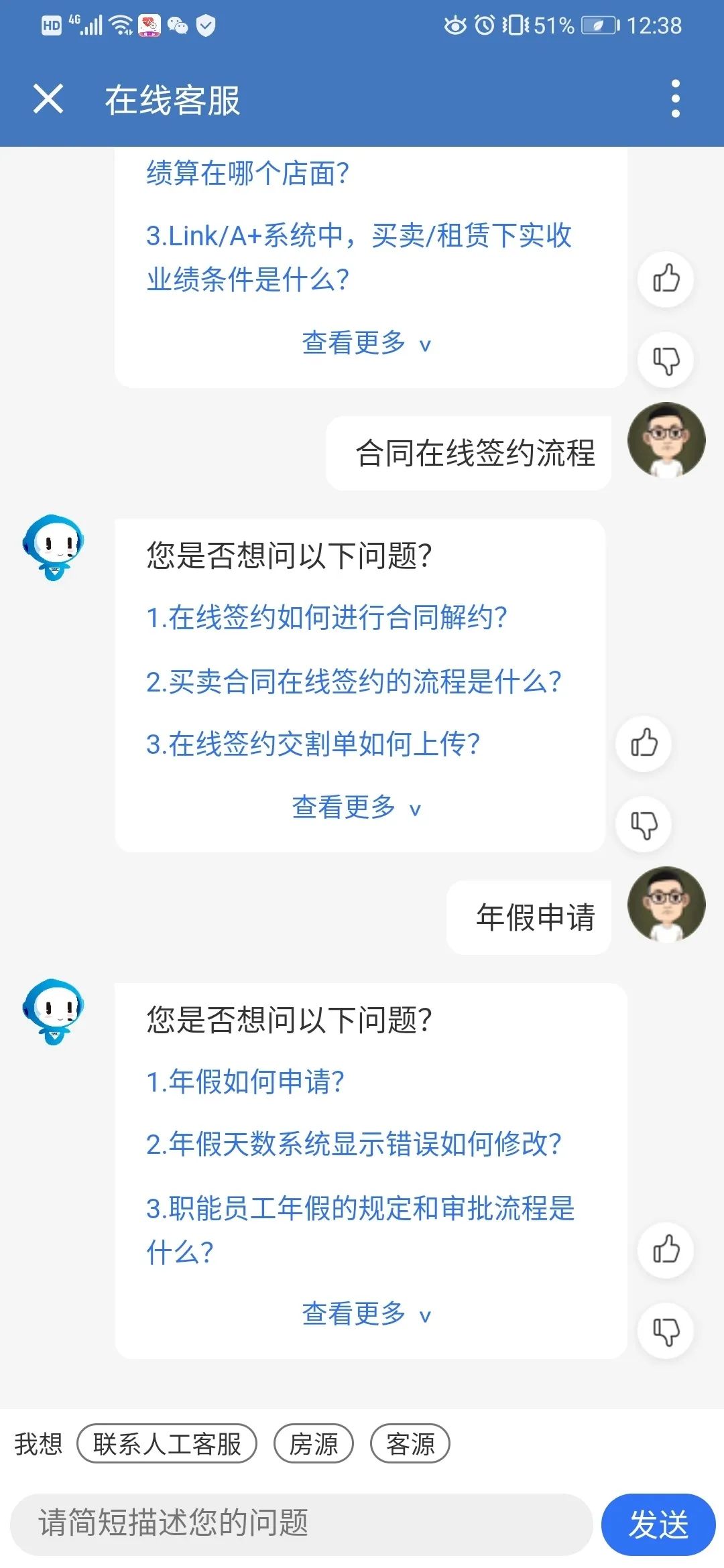经纪人在面对客户时会遇到很多业务上的问题,比如二套房的贷款比例,税费如何计算等,而经纪人自己也有需要解答的问题,比如公司某项规章制度的解读,等级积分制度,公积金如何提取等。经过长期的积累,运营人员根据线上用户的提问做总结,沉淀下来的知识形成了房产领域的FAQ库(知识库)。我们的智能客服场景致力于解决经纪人的问题,提供一个便捷的搜索入口,以便后续有人再有相同或相似问题时可以直接搜到答案。
