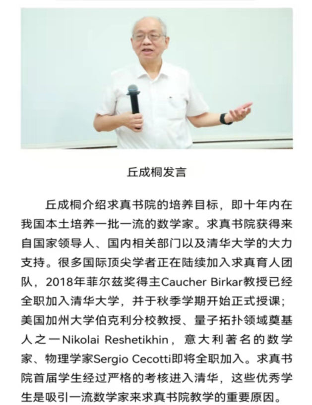 2018年2月7日,教育部正式批复清华大学设立丘成桐数学英才班,同年8月22日,首批「丘成桐数学英才班」15名本科生正式入学。