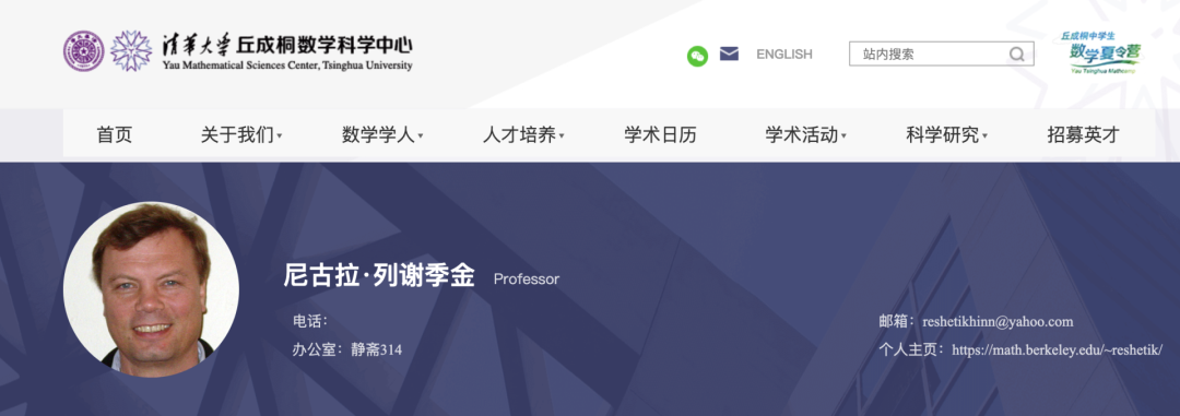 然而,Reshetikhin 加入清华一事,早已有消息。