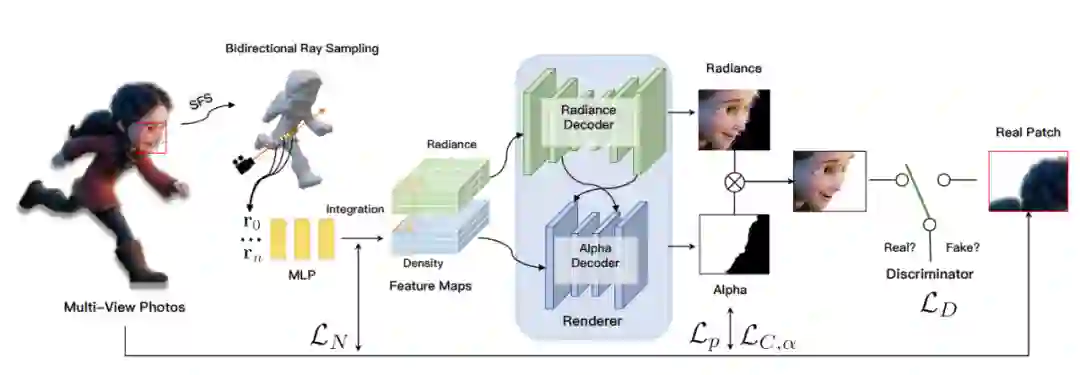 模糊复杂目标的高真实感建模和渲染对于许多沉浸式 VR/AR 应用至关重要,其中物体的亮度与颜色和视图强相关。本篇论文的研究者提出了一种有效的采样策略以及摄像机光线和图像平面,从而能够进行有效的辐射场采样,并以 patch-wise 的方式学习。同时,该研究还提出了一种新型的体积特征集成方案,该方案会生成 per-patch 混合特征嵌入,以重建视图一致的精细外观和不透明输出。