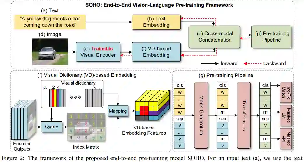 不需要边界框标注、用于视觉语言表征学习的端到端预训练模型 SOHO。