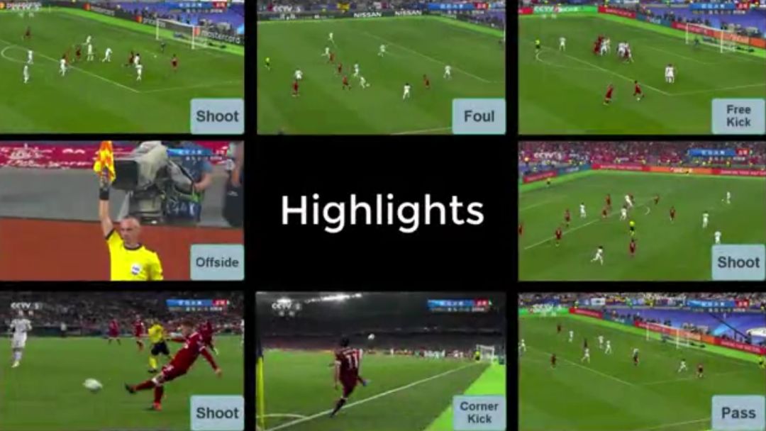 精彩时刻检测:对固定划窗内的片段进行分类,包含射门、任意球、角球、受伤等多种类别。