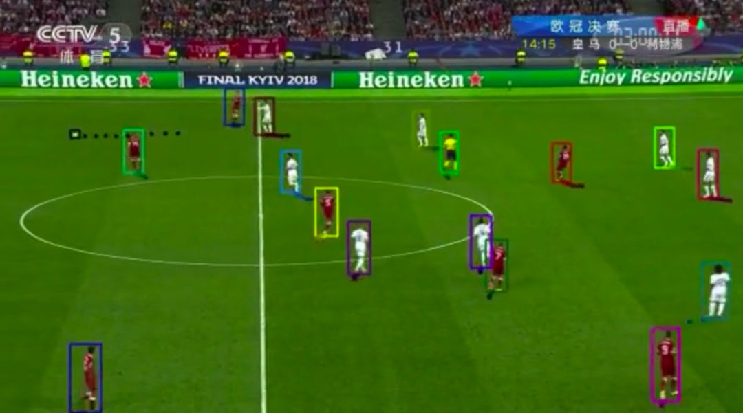 检测&语义分割:基于SSD的目标检测,逐帧输出球员和足球的位置;基于DeepSORT的多目标跟踪,使用Kalman Filter对球员和足球的运动进行建模使用度量学习对球员外观建模。
