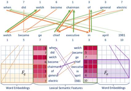 例如,april和when不是近义词,在字符串上也无法匹配,但LSF可以捕捉到他们之间有6的相似度,而april正是回答该问题的正确答案,