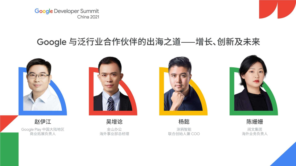 嘉宾远程连线:Google Play 中国大陆地区商业拓展负责人赵伊江、金山办公海外事业部总经理吴增谂、涂鸦智能联合创始人兼COO杨懿、阅文集团海外业务负责人陈珊珊
