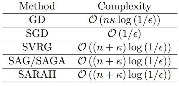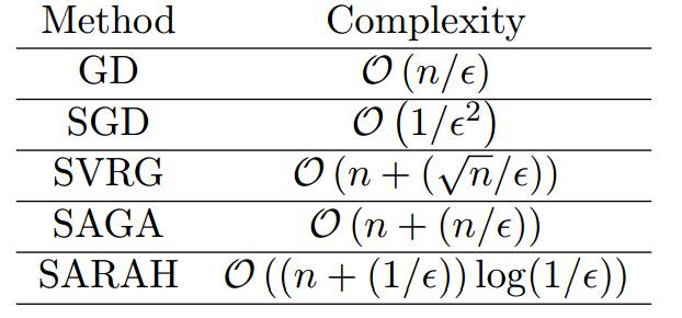 研究员通过结合 SVRG 和 SAGA 的一些思想,提出一个新的方法,叫做 SARAH。仅是内层迭代步长不同于 SVRG,SARAH 的公式如下