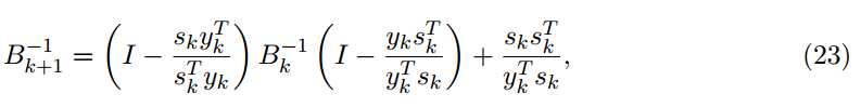 以满足割线方程 sk = (B^-1)yk。使用精心挑选的规范表达,这个问题的解析式可以显示的写成