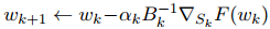 随着步长 sk = w_k+1 − wk 和位移 yk = ∇F(wk+1) − ∇F(wk) 的移动,有人选择