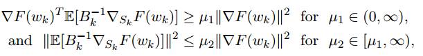 此时具有与 SGD 相同的收敛速度属性。我们就 可以合理地假设这些限定适用于上述讨论的方法,这些假设有适当的保障。然而,在拟牛顿方法的背景下应该小心,其中随机梯度估计可能与海塞近似相关。