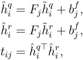 在得到查询视频和备选视频的特征表示之后,传统的方法将他们拼接到一起,然后输入到神经网络来计算匹配结果。直接的拼接的方法,并不能很好的得到视频中相关的内容,所以我们采用双线性匹配的方法来代替拼接,来更加全面的获取视频的相关内容。