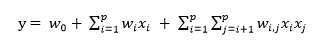 在这里我们认为各个特征之间是相互独立的,而事实上往往有些特征之间是相互关联、相互影响的。因此,就有必要想办法捕捉这些特征之间的相互影响。简单起见,先只捕捉二阶的关系,即特征之间两两之间的相互影响。具体反映到回归公式上,即为