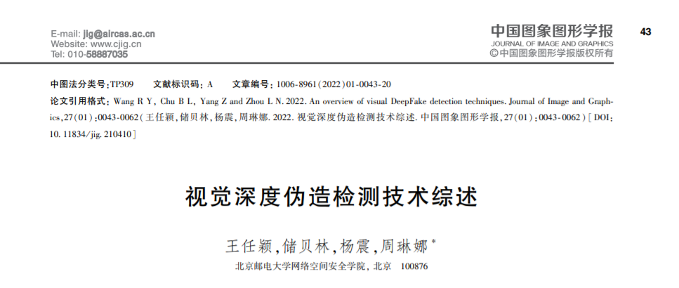 随着生成式深度学习算法的发展,深度伪造技术发展并应用于各个领域。深度伪造技术的滥用使人们逐渐意识到其带来的威胁,伪造检测技术随之而生。本文基于视觉深度伪造技术研究进行综述。1)简要介绍了视觉深度伪造技术的发展历程及技术原理,包括生成对抗网络在深度伪造制品中的应用;2)对现有的视觉深度伪造数据集进行汇总并归类;3)对目前的视觉深度伪造检测技术进行了分类,将现有的检测方法归纳为基于具体伪影的、基于数据驱动的、基于信息不一致和其他类型视觉深度伪造检测等4种分类。其中,基于伪影的检测方法着重于寻找伪造制品与真实图像之间的像素级差异,通过机器学习识别深度伪造制品中的人工伪影痕迹,基于信息不一致的方法则着重于寻找伪造制品与真实图像或视频之间的信息级差异,这两种方法都具有识别效率高、训练便捷等优点;基于数据驱动的方法通过大量的数据集和机器学习训练,直接使用神经网络本身对深度伪造制品进行训练,并通过改善网络架构增进模型以提高训练效率,因为其模型的多变和高精确率成为目前深度伪造检测的热门方向。同时,本文分析了4种方法的具体优缺点,并进一步给出了未来视觉深度伪造检测研究的重点和难点。