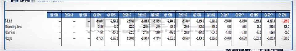 内容获取成本,数据中心折旧增加,海底电缆的铺设费用(和数据中心一样都是为了满足云计算,machine learning对计算能力的要求),本质上都是资本开支,所以导致谷歌这个季度的资本开支爆棚,达到了72亿美金,同比上涨190%。