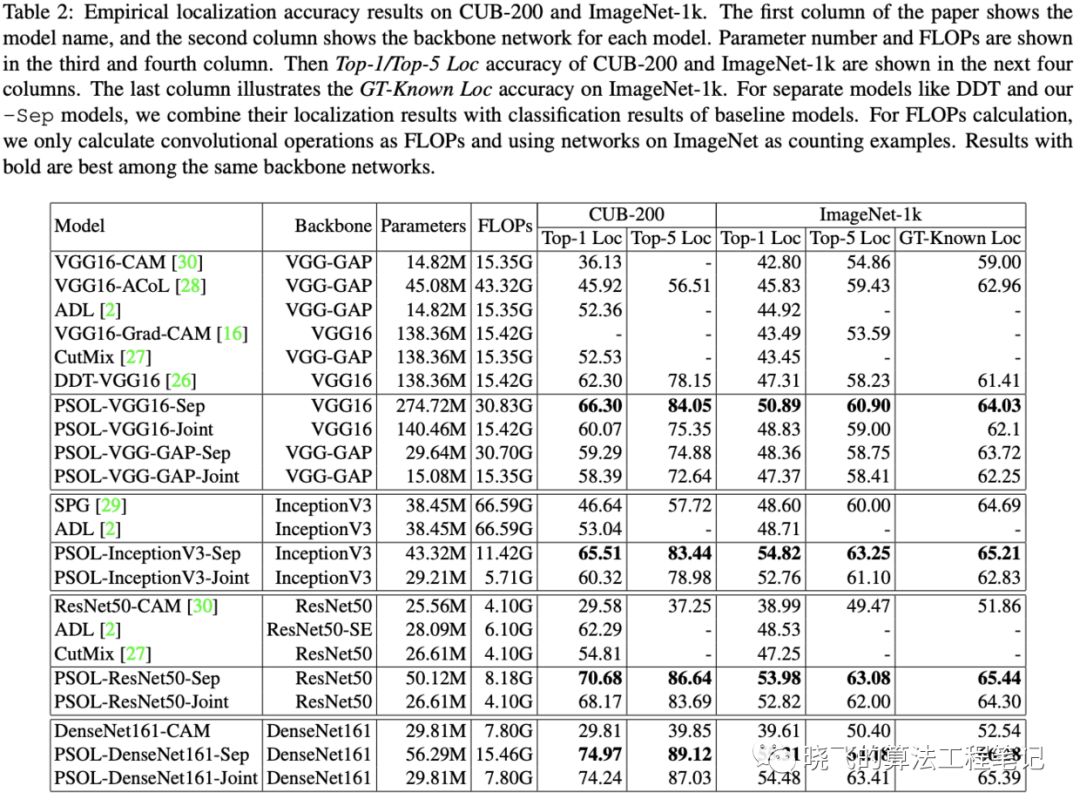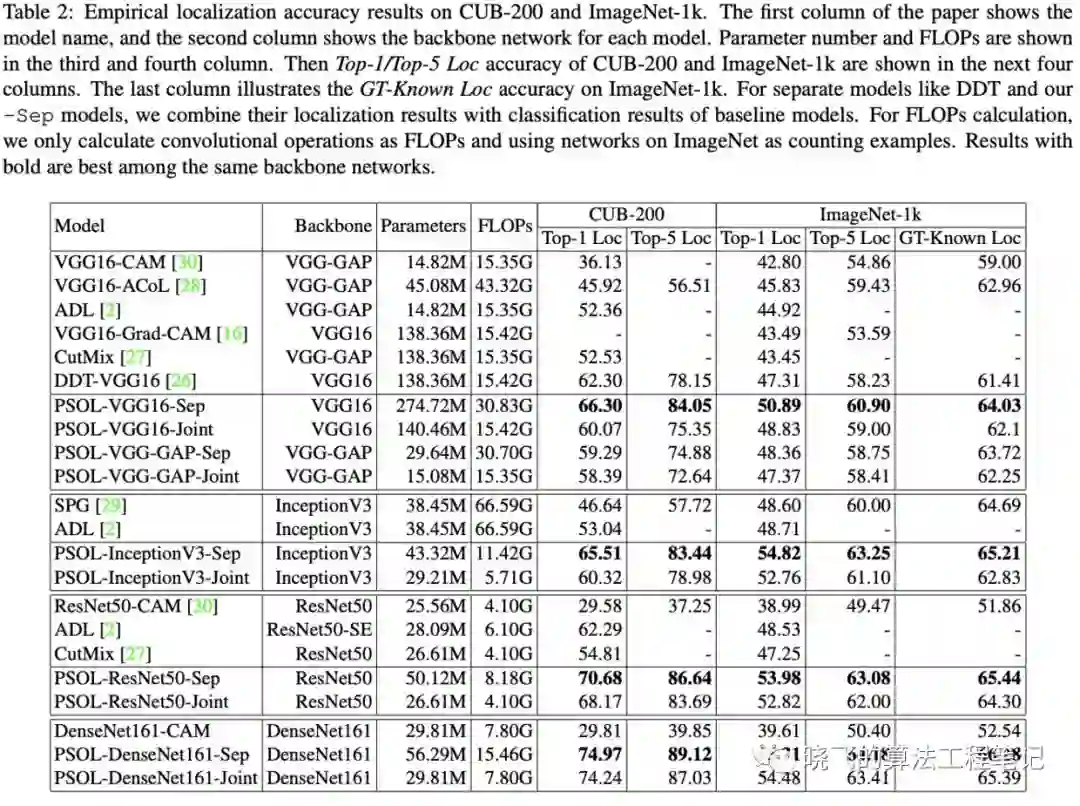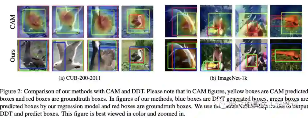 Datasets,使用ImageNet-1k和CUB-200,测试数据的bbox是准确标注的,而训练集上的bbox则通过前面提到的方法进行生成