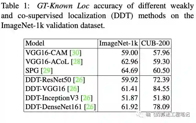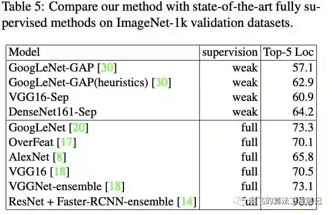 时正确;Top-1定位准确率(Top-1 Loc),Top-1的分类正确且GT-known Loc正确;Top-5定位准确率(Top-5 Loc),Top-5结果中存在分类正确且GT-known Loc正确