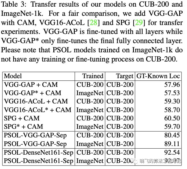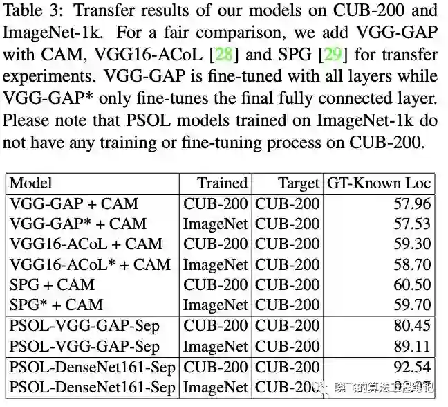 PSOL不需要任何监督信息就很好的从ImageNet迁移到CUB-200,甚至比fine-tune的WSOL方法都好,证明目标定位与类别关联是没必要的