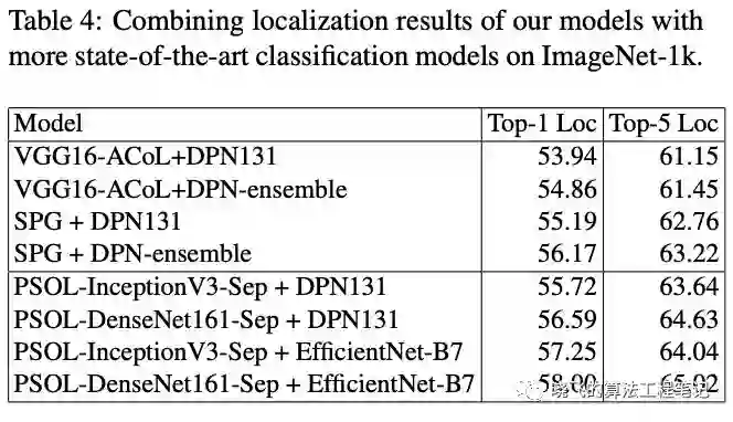 将分类部分的网络改为SOTA分类网络结合进行实验,PSOL性能依然比WSOL要好