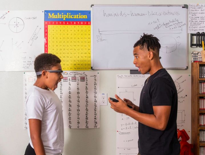▲Esaïe戴着Google Glass时与他的兄弟一起练习面部表情