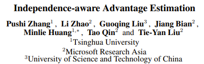 在强化学习中,优势函数 (advantage function) 普遍采用蒙特卡洛 (MC)、时间差分 (TD),以及一种将前两者结合的优势函数估计算法(GAE) 等进行估计,而这些算法都存在方差较高的问题。因此,微软亚洲研究院的研究员们首次提出通过利用环境中存在于当前动作和未来状态之间的独立性,来降低优势函数估计中的方差。