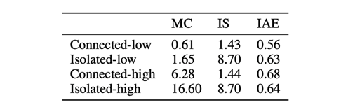 表1:不同设置下 IAE、MC、IS 的标准差