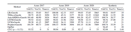 为了验证 CUC 算法的有效性,本文将 CUC 算法与包含经典预测方法以及精确优化求解方法的两阶段法进行了对比,结果如表2和表3所示。结果表明 CUC 算法可以高效准确地得到违反约束比例很小的调度方案,同时可以尽可能使得更多的作业得到调度。而且通过改变违反约束水平的参数p,CUC 算法也可以灵活控制实际的违反约束情况出现的比例,以满足不同系统对于调度方案的实际违反约束情况的要求。