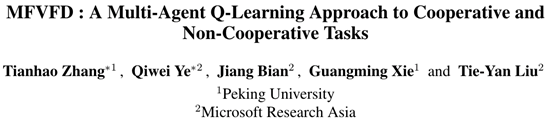 多智能体强化学习(Multi-agent Reinforcement Learning, MARL) 有望帮助解决各种现实世界中的问题。然而,追求有效的MARL 面临着两大挑战:部分可观察性和可扩展性限制。为了应对这两大挑战,并使得 MARL 适用于竞争任务、合作任务以及混合任务,微软亚洲研究院和北京大学的研究员们在中心训练分散执行(Centralized Training with Decentralized Execution,CTDE)的框架下,从个体值函数分解 (Value Function Decomposition,VFD)的角度,结合平均场理论(Mean Field Theory,共同提出了一种新颖的多智能体 Q 学习方法——MFVFD。