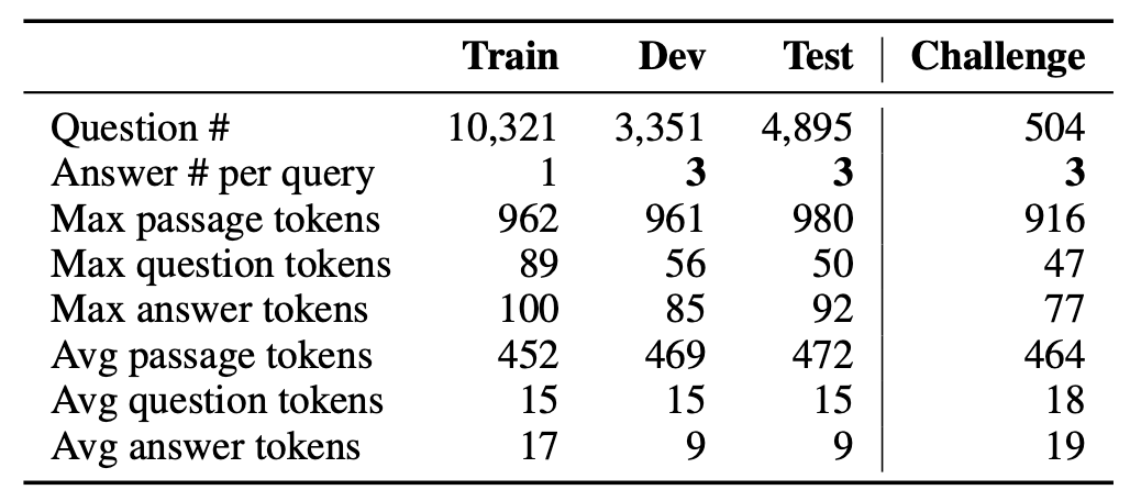 除了常规的开发集和测试集之外,我们额外标注了一个挑战集,包含了需要综合推理才能解答的问题,对未来的阅读理解系统发起挑战。