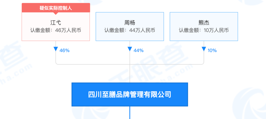 天眼查显示,四川至膳由江弋、周杨、熊杰分别持股46%、44%、10%。