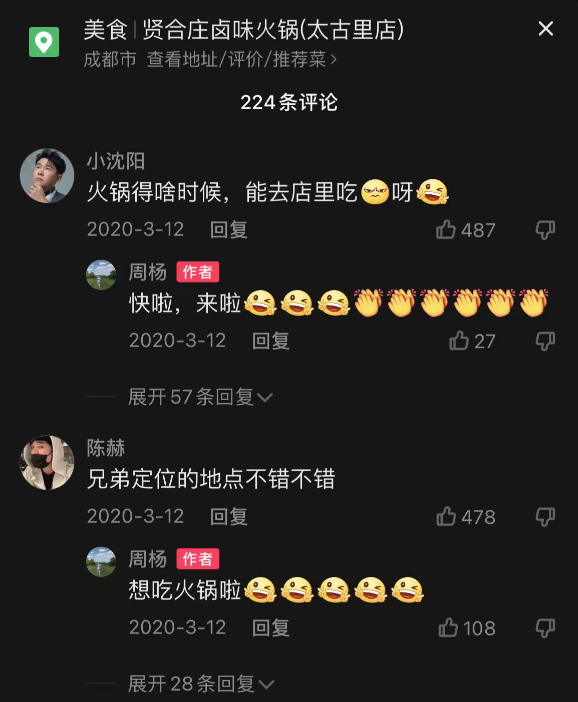 或是顺着合作伙伴在娱乐圈的人脉,显然,周杨认识了陈赫与他的“朋友圈”,也曾登上《天天向上》《峰味》等热门综艺,为火锅品牌造势。